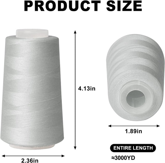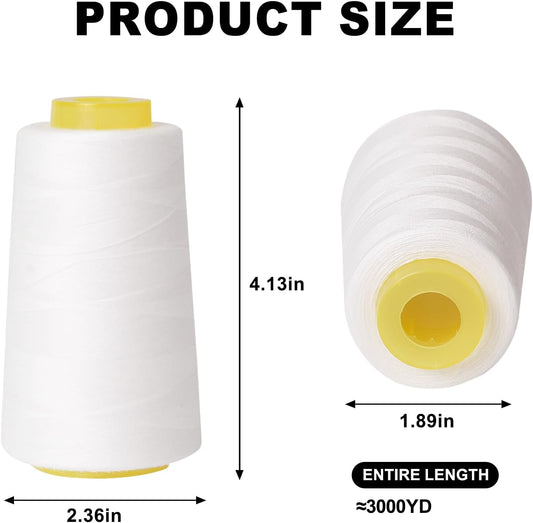Sewing Thread Cone Set, 3 Pack Serger Thread, 3000 Yards Each, All Purpose Thread for Sewing, Quilting, Machines, Overlock, Merrow & Hand Embroidery (White*3)