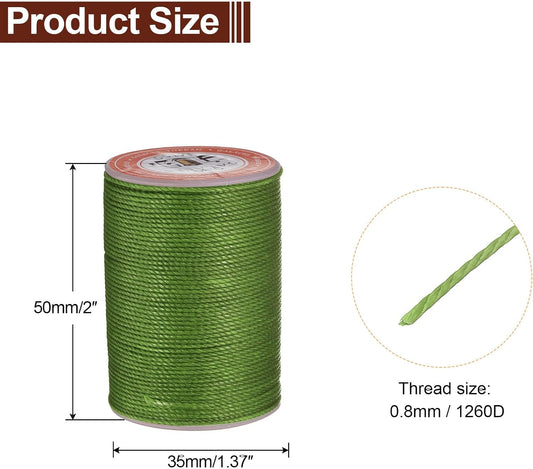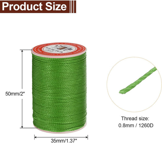 uxcell Round Leather Sewing Waxed Thread, 55m / 60 Yards Polyester Wax String, 0.80mm Wax Stitching Cord for Leather Crafts, Bookbinding, Bracelets Braided, Grass Green, 2pcs