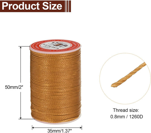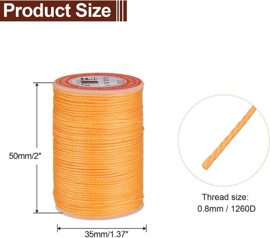 Waxed Thread,852Yards 150D 0.8mm Flat Polyester Wax Thread for Hand Sewing Leather Craft DIY Projects Shoes Repair Book Binding(Yellow Orange)