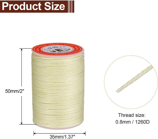 uxcell Round Leather Sewing Waxed Thread, 55m / 60 Yards Polyester Wax String, 0.80mm Wax Stitching Cord for Leather Crafts, Bookbinding, Bracelets Braided, Pale Cream, 2pcs