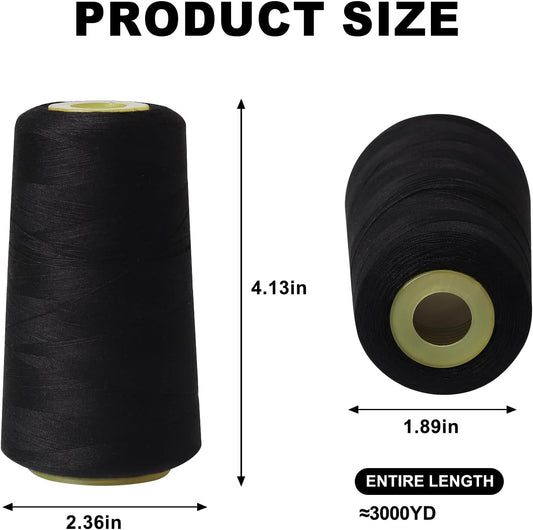 Sewing Thread Cone Set, 2 Pack Serger Thread, 3000 Yards Each, All Purpose Thread for Sewing, Quilting, Machines, Overlock, Merrow & Hand Embroidery (Black*2)