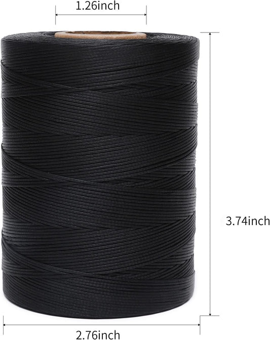 Waxed Thread,852Yds 150D 0.8mm Flat Polyester Wax Thread for Hand Sewing Leather Craft DIY Projects Shoes Repair Book Binding(Black)
