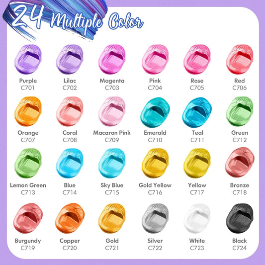 Acrylic Paint Set With 12 Brushes, 24 Colors (59ml, 2oz) Art Craft Paints for Adults Artists Beginners Painters, Canvas Halloween Pumpkin Ceramic Wood Rock Painting Art Supplies (Metallic)