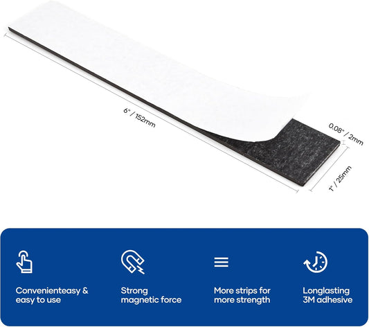Magnetic Strips Self Adhesive,6 Pack 6" x 1" (150 x25 x 2 mm) Sticky Back Magnet Tapes, Flexible Durable Magnet Stickers for Classroom Office Kitchen, Fridge, DIY, Crafts
