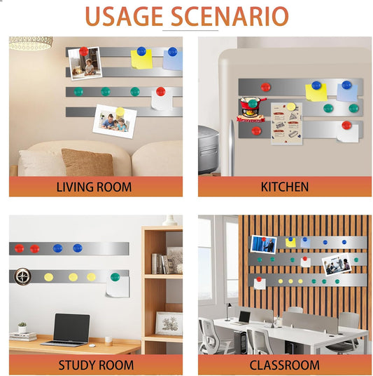 Self Adhesive Backing Metal Strip for Magnets, Flexible Ferrous Memo Tapes Roll for Bulletin Boards in Studio, Office, School (Glossy Silver, 118''L x 1.57''W, Contains 30 Magnets)