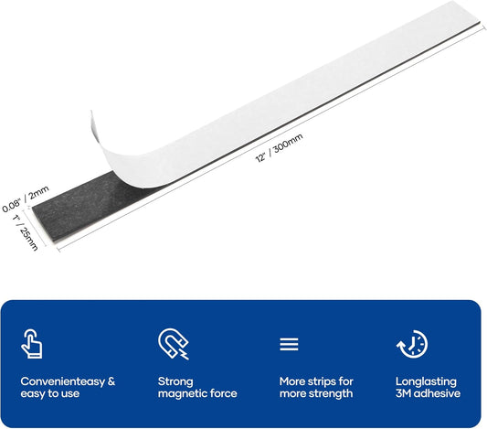 10 Pack Magnetic Tape with 3M Adhesive Backing, 12"L x 1"W Flexible Magnet Strips for DIY Crafting