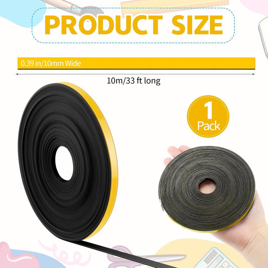 Magnetic Tape Roll Thin Strips, 0.39 Inch x 33 Feet Magnetic Board Dividers Whiteboard Graphic Decorative Tape Marking Line for Classroom Office Art Accessories(Black)