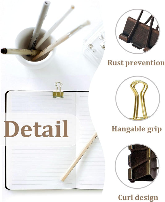 Assorted Binder Clips 0.75/1/1.25in 25-Pack - Copper Tone Clips for Office & Home