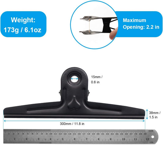 Coideal Extra Large Bulldog Clips Black, 2 Pcs Heavy-Duty Jumbo Bull Clips 30cm XXL Stainless Steel Paper Clip Clamps (11 4/5 Inch)