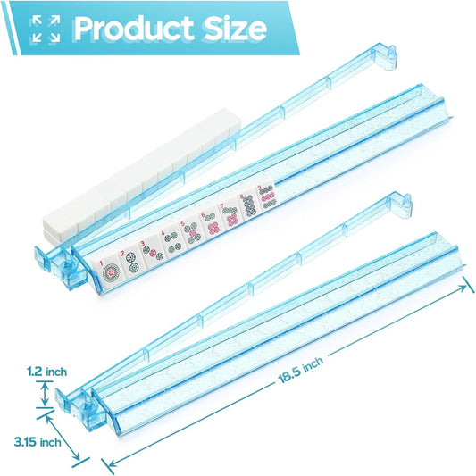 Mahjong Racks with Pushers Set of 4, Mahjong Tile Pushers and Racks, Acrylic Majiang Tile Holders Accessories (Bling Blue)