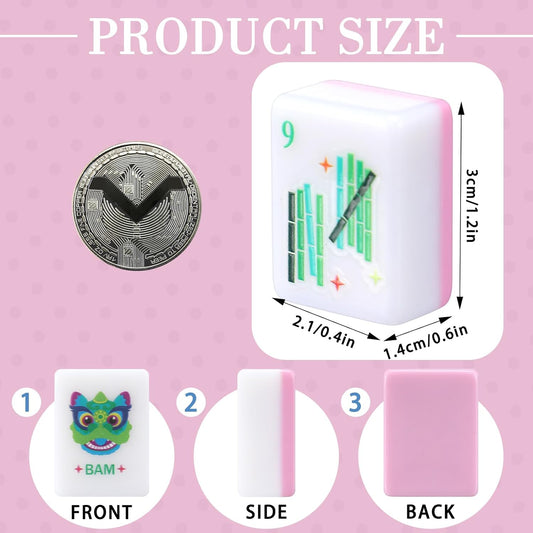 American Mahjong Game Set, 166 White Tiles, 4 All-in-One Color Rack/Pushers, Complete Mahjong Set with Pink Printed Carrying Bag