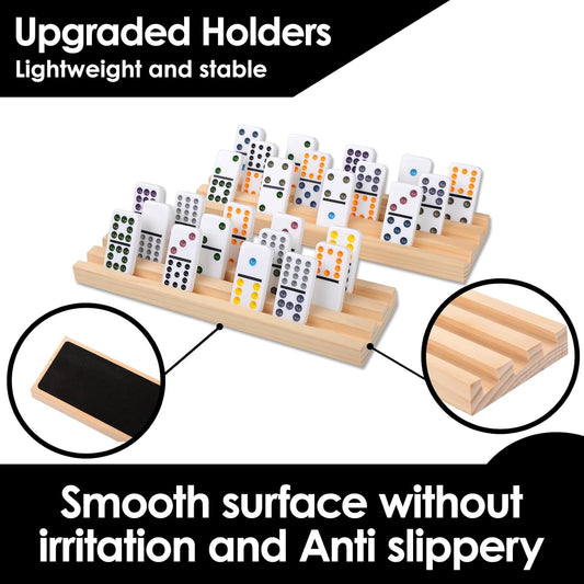 Mexican Train Dominoes Set Double 12 Colored Dot Dominos with 8 Wooden Racks & 91 Tiles Portable Travel Case Classic Family Board Game Cognitive Strategy Game for Adults Kids