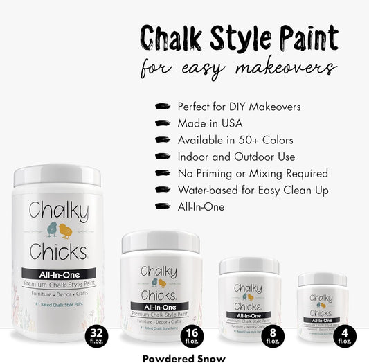 Chalky Chicks All-in-One Chalk Paint for Furniture or Cabinet -32 FlOz-Matte Finish Powdered Snow (Pure White) for Metal, Wood Furniture Paint - No Sanding All-in-One for Home Decor & Crafts, USA Made