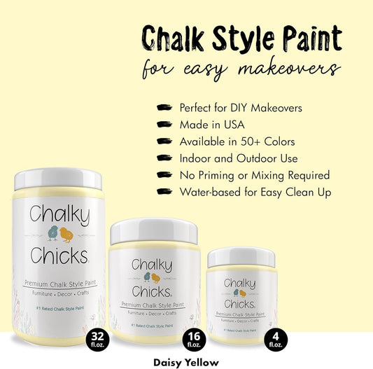 Chalky Chicks All-in-One Chalk Paint for Furniture or Cabinet - 32 Fl Oz - Matte Finish Daisy (Light Yellow) for Metal, Wood Furniture Paint - No Sanding All-in-One for Home Decor & Crafts, USA Made
