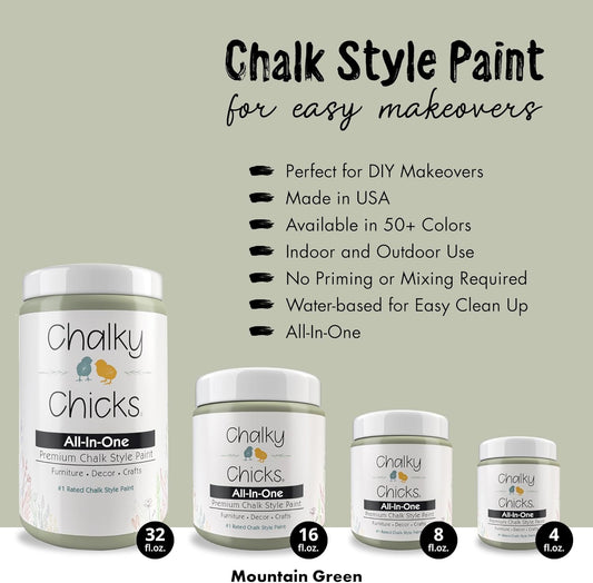Chalky Chicks All-in-One Chalk Paint for Furniture or Cabinet -32FlOz-Matte Finish Mountain Green (Sage Green) for Metal, Wood Furniture Paint - No Sanding All-in-One for Home Decor & Crafts, USA Made