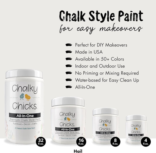 Chalky Chicks 8 Fl Oz Matte Hail (White) Chalk Paint for Furniture Without Sanding, No Prep Furniture Paint No Sanding All in One for Crafts, Wood, Walls, Cabinet, Metal, Dresser, Farmhouse