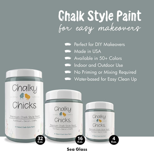 Chalky Chicks All-in-One Chalk Paint for Furniture or Cabinet - 16 Fl Oz - Matte Finish Sea Glass (Light Blue) for Metal, Wood Furniture Paint - No Sanding All-in-One for Home Decor & Crafts, USA Made