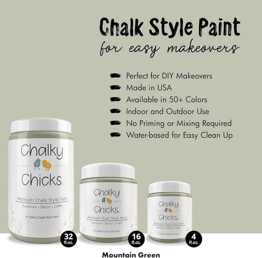 Chalky Chicks All-in-One Chalk Paint for Furniture or Cabinet -16FlOz-Matte Finish Mountain Green (Sage Green) for Metal, Wood Furniture Paint - No Sanding All-in-One for Home Decor & Crafts, USA Made