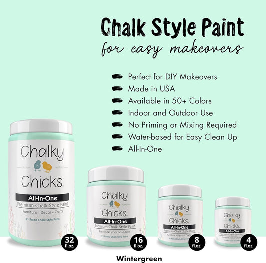Chalky Chicks All-in-One Chalk Paint for Furniture or Cabinet - 8 Fl Oz - Matte Finish Wintergreen (Mint) for Metal, Wood Furniture Paint - No Sanding All-in-One for Home Decor & Crafts, USA Made