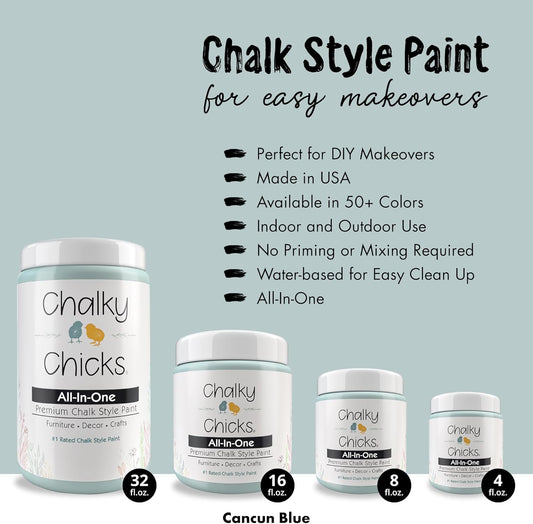 Chalky Chicks All-in-One Chalk Paint for Furniture or Cabinet - 4Fl Oz - Matte Finish Cancun Blue (Light Blue) for Metal, Wood Furniture Paint - No Sanding All-in-One for Home Decor & Crafts, USA Made