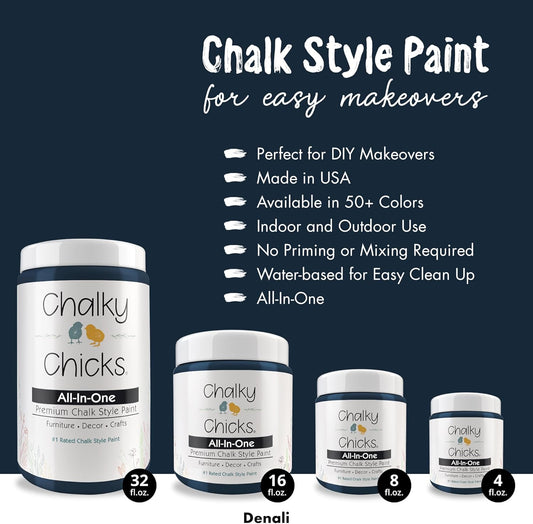 Chalky Chicks All-in-One Chalk Paint for Furniture or Cabinet - 4 Fl Oz - Matte Finish Denali (Deep Blue) for Metal, Wood Furniture Paint - No Sanding All-in-One for Home Decor & Crafts, USA Made