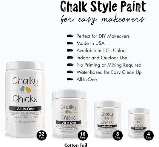 Chalky Chicks All-in-One Chalk Paint for Furniture or Cabinet - 8 Fl Oz - Matte Finish CottonTail White for Metal, Wood Furniture Paint - No Sanding All-in-One for Home Decor & Crafts, USA Made