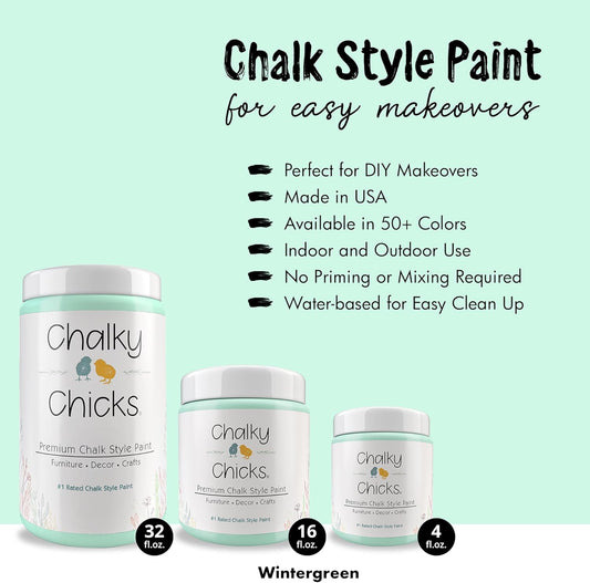 Chalky Chicks All-in-One Chalk Paint for Furniture or Cabinet - 32 Fl Oz - Matte Finish Wintergreen (Mint) for Metal, Wood Furniture Paint - No Sanding All-in-One for Home Decor & Crafts, USA Made
