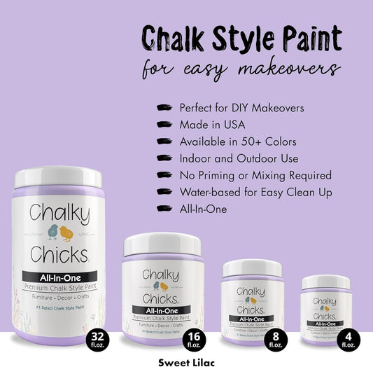 Chalky Chicks All-in-One Chalk Paint for Furniture or Cabinet - 8Fl Oz-Matte Finish Sweet Lilac (Light Purple) for Metal, Wood Furniture Paint - No Sanding All-in-One for Home Decor & Crafts, USA Made