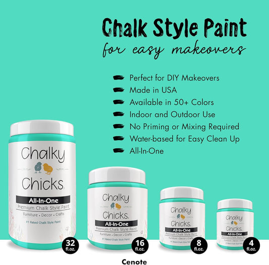 Chalky Chicks All-in-One Chalk Paint for Furniture or Cabinet - 32 Fl Oz - Matte Finish Cenote (Teal Blue) for Metal, Wood Furniture Paint - No Sanding All-in-One for Home Decor & Crafts, USA Made