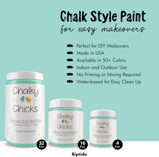 Chalky Chicks All-in-One Chalk Paint for Furniture or Cabinet - 32 Fl Oz - Matte Finish Riptide (Green Blue) for Metal, Wood Furniture Paint - No Sanding All-in-One for Home Decor & Crafts, USA Made