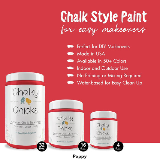 Chalky Chicks All-in-One Chalk Paint for Furniture or Cabinet - 16 Fl Oz - Matte Finish Poppy (Deep Red-Pink) for Metal, Wood Furniture Paint - No Sanding All-in-One for Home Decor & Crafts, USA Made