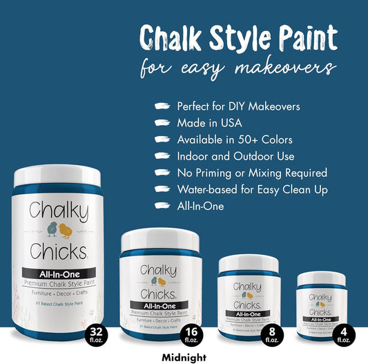 Chalky Chicks All-in-One Chalk Paint for Furniture or Cabinet - 32 Fl Oz - Matte Finish Starless Night Black for Metal, Wood Furniture Paint - No Sanding All-in-One for Home Decor & Crafts, USA Made