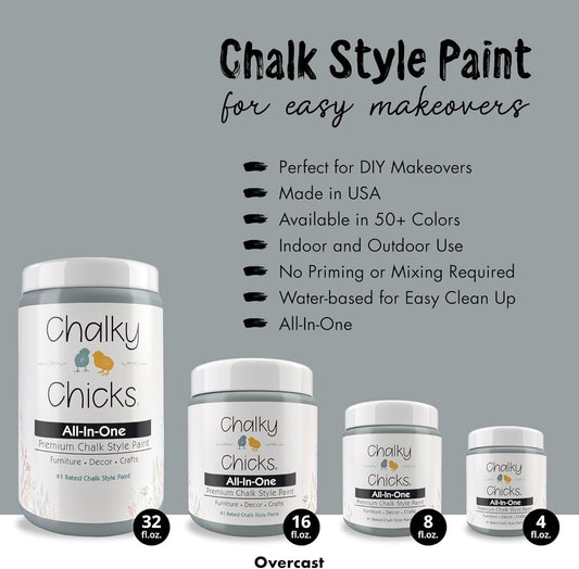 Chalky Chicks 8 Fl Oz Matte Overcast (Blue Gray) Chalk Paint for Furniture Without Sanding - No Prep Furniture Paint No Sanding All in One for Crafts, Wood, Walls, Cabinet, Metal, Dresser, Farmhouse
