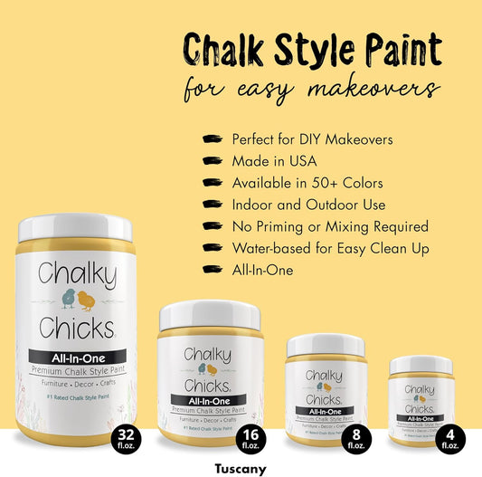 Chalky Chicks All-in-One Chalk Paint for Furniture or Cabinet - 8 Fl Oz - Matte Finish Tuscany (Yellow) for Metal, Wood Furniture Paint - No Sanding All-in-One for Home Decor & Crafts, USA Made