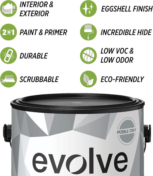 EVOLVE Paint & Primer: Environment-friendly, Low Sheen with One-coat Coverage for Interior & Exterior surfaces (Pebble Gray, 1-Gallon)