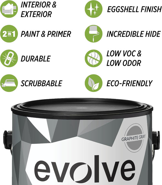 EVOLVE Paint & Primer: Environment-friendly, Low Sheen with One-coat Coverage for Interior & Exterior surfaces (Graphite Gray, 1-Gallon)