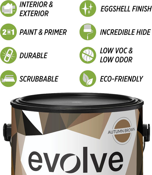 EVOLVE Paint & Primer: Environment-friendly, Low Sheen with One-coat Coverage for Interior & Exterior surfaces (Autumn Brown, 5-Gallon)