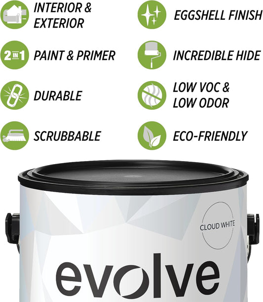 EVOLVE Paint & Primer: Environment-friendly, Eggshell with One-coat Coverage for Interior & Exterior surfaces (Cloud White, 1-Gallon)