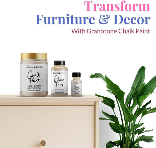 GRANOTONE Chalk Paint for Furniture | Matt-Finish Water-Based Acrylic Paint for Wood, Walls, Metal, Glass, Paper, Fabric Canvas | Maximum Coverage Chalk Paint for Kids & Adults, 250 Ml (DRIFT STONE)