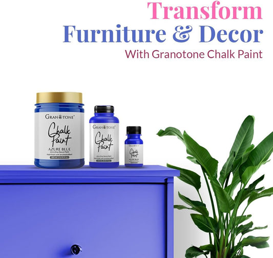 GRANOTONE Chalk Paint for Furniture, Matt-Finish Water-Based Acrylic Paint for Wood, Walls, Metal, Glass, Paper, Fabric Canvas, Maximum Coverage Chalk Paint for Kids & Adults, 250 Ml (AZURE BLUE)