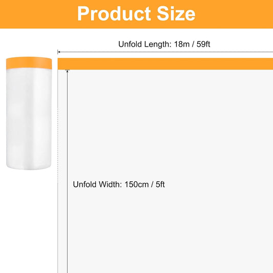 uxcell 6 Rolls Painters Plastic with Tape, 2 x 59 Ft Pre-Taped Masking Film Tape and Plastic Film Paint Plastic Covering Roll for Covering Skirting, Frames and Auto Body, Yellow/Clear