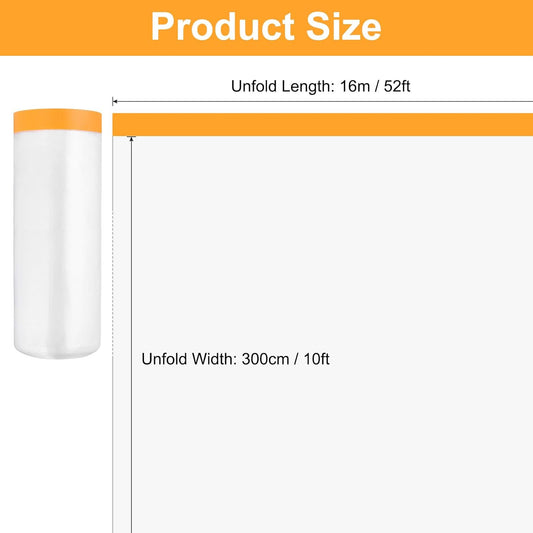 uxcell 2 Rolls Painters Plastic with Tape, 10 x 52 Ft Pre-Taped Masking Film Tape and Plastic Film Paint Plastic Covering Roll for Covering Skirting, Frames and Auto Body, Yellow/Clear
