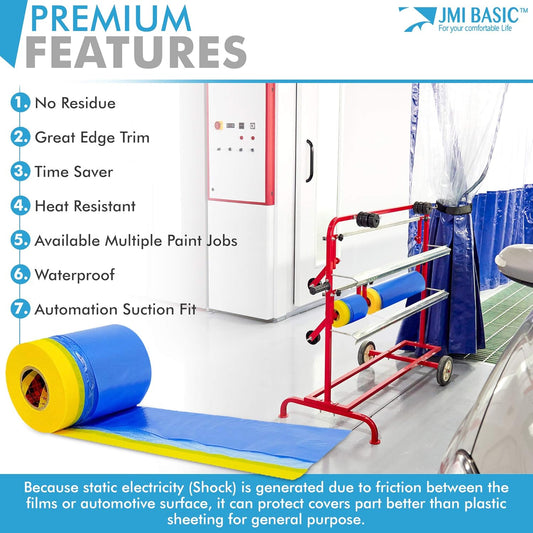 Plastic Sheeting for Car Paint – Assorted 3 Sizes Multi Pack – No Residue Painters Tape with Drop Cloth – Automotive Masking Tape with Tarp Waterproof 65 Feet (94 x 59 x 35 Inch - 3RL)