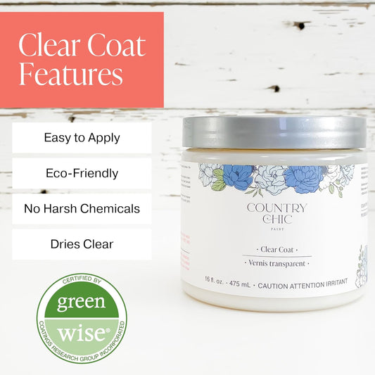 Clear Coat Pint (16oz) - Eco-Friendly Clear Satin Sheen Top Coat for Chalk Style Wood Furniture Paint, Non-Yellowing Waterproof Finish, Easy Application