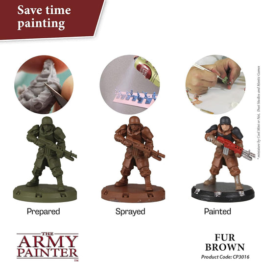 The Army Painter Colour Primer Fur Brown, 400 mL Acrylic Spray Primer, Spray Paint Basecoat for Miniature Priming, Tabletop Roleplaying, Boardgames, and Wargames Miniature Modelling