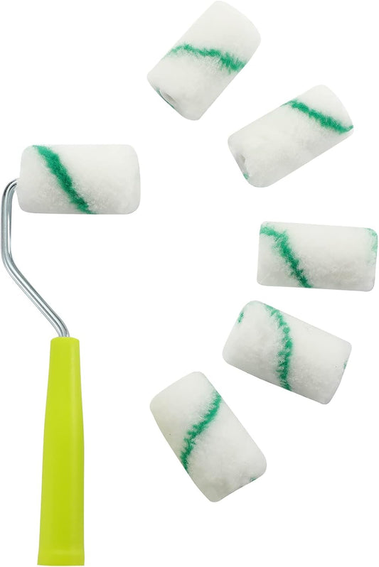 Premium 4-Inch Mohair Mini Paint Roller 6pc Set. 4" Mini Roller Frame + 5 Pack, Lint-Free & Shed-Resistant for Smooth Finishes – Ideal for Cabinets, Trim & Doors – Works with All Paints & Stains