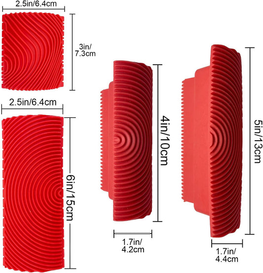 Tanstic 4Pcs Wood Graining Painting Tool Set, Red Blue Rubber Wood Grain Tool and Rubber Empaistic Wood Texture Pattern Roller with Handle for Wall Floor Furniture DIY Room Decoration
