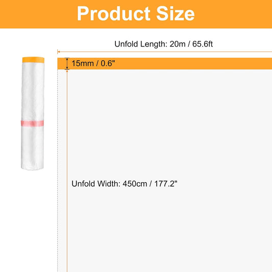 HARFINGTON Pre-Taped Masking Film 177.2" x65.6ft Double Adhesive Tape and Drape Painters Plastic Drop Cloth Film with Tape Plastic Sheeting for Automotive Painting Covering