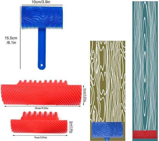 Honoson Set of 3 Wood Graining Tool Wood Graining Painting Tool Set DIY Texture Rubber Empaistic Roller for Household Wall Room Art Paint Decoration