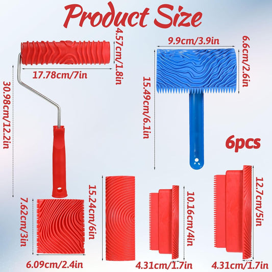 Wood Grain Tool, 6pcs 7" Fake Wood Grain Roller Painting Tool with Handle DIY Rubber Wood Grain Painting Tool Look Like Wood for Wall Room Art Paint Decoration
